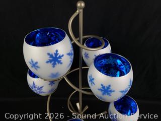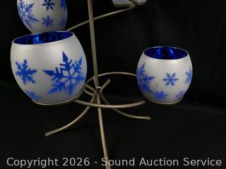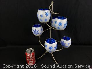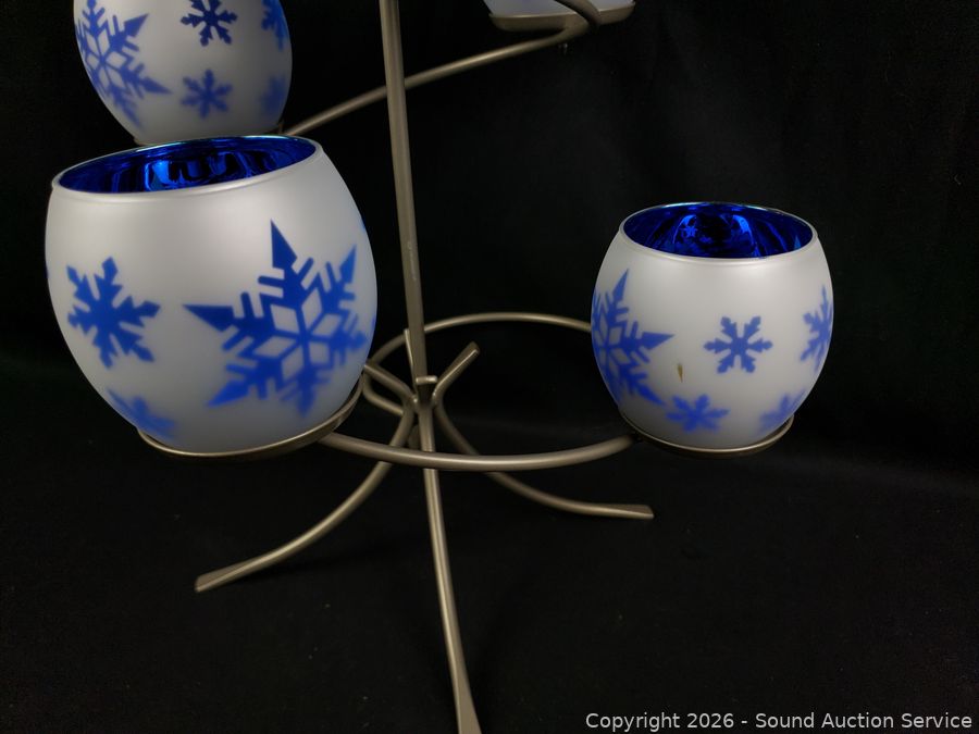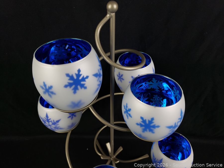 Festive Centerpiece, 6 Snowflake Tealight Holders with original boxes. Several catalog 2001, 2003-13, 2015. Some filler beads. Refer to photos for lot contents, more details.