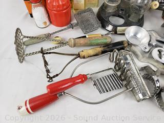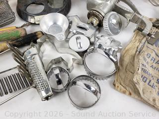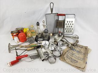 Hand mixer, condiment set, food chopper, cookie cutters, etc. Refer to photos for lot contents, more details.