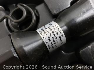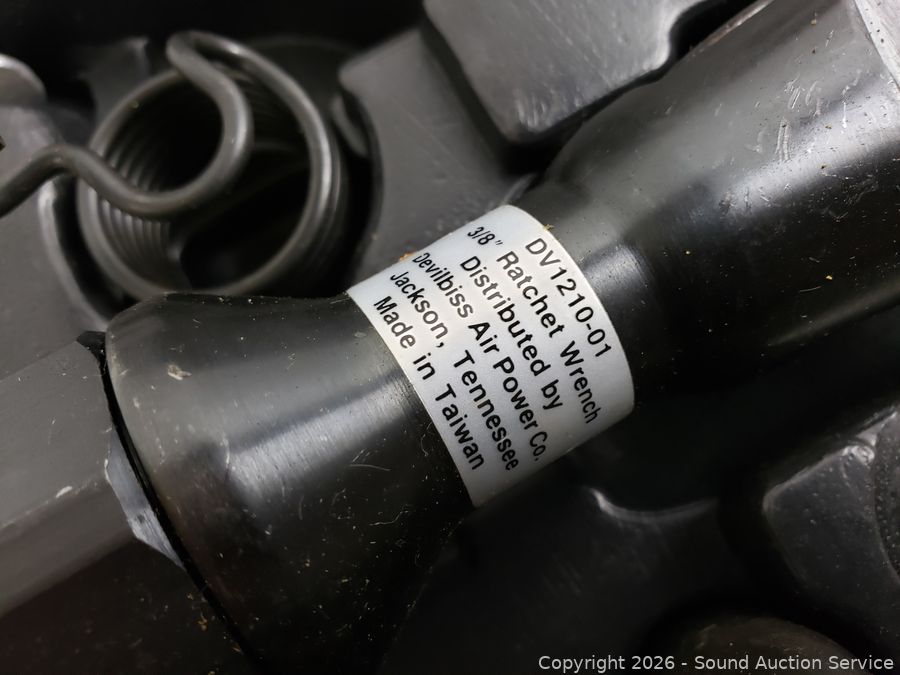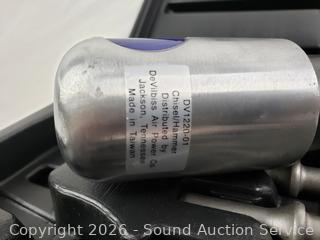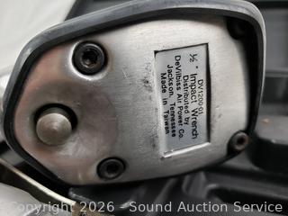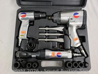 Air hammer with 3 bits, 1/2" air impact driver, 3/8" air ratchet with 8 bits. In great condition. All work.