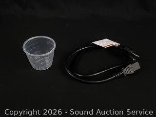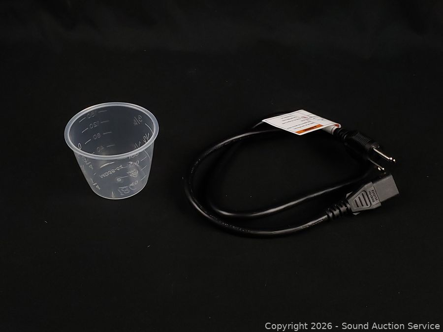 Has power, appears to be functioning as intended. Dirty from use, could use a proper cleaning. Comes with measuring cup.