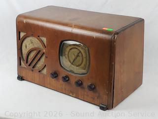 Untested, damaged cord. Broken plastic cover for dial. 11.25" H x 19.5" W x 9" D.