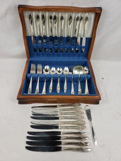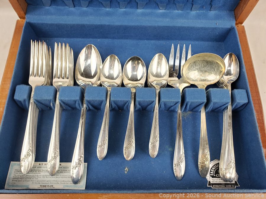Lot #0308: Oneida Tudor Plate Silverplate Flatware Set w/Chest