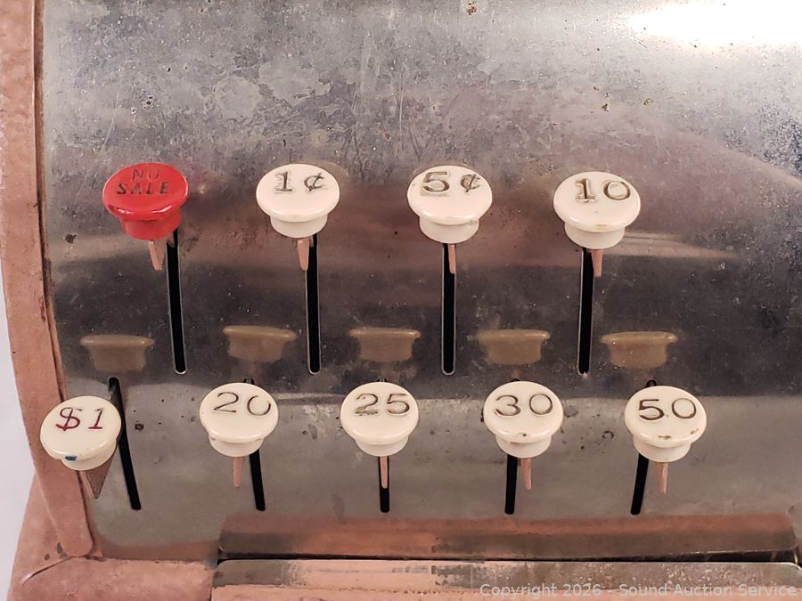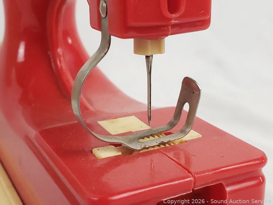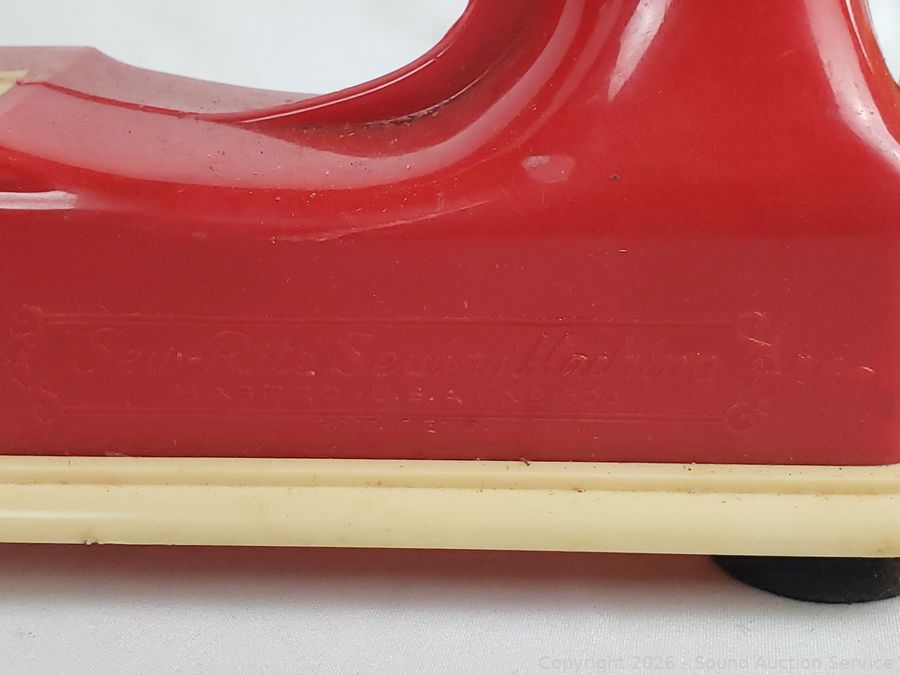 Register has a damaged plastic face, sewing machine has a damaged knob.