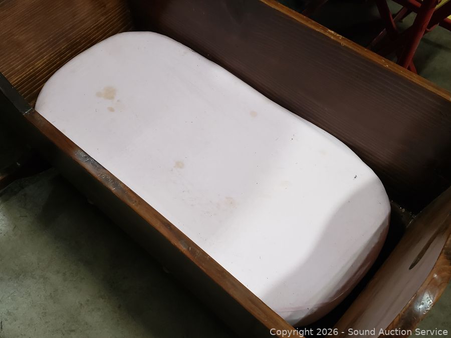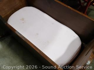 24.5" H x 18" W x 36" L. Has a pad insert, some stains, dirty spots.