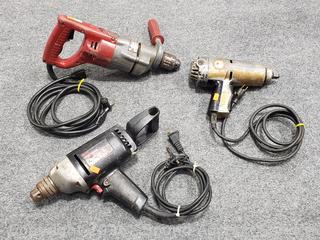Milwaukee 1/2"drill, Black & Decker electric 1/2" impact wrench, Craftsman 1/2" drill. All work, various wear from use.