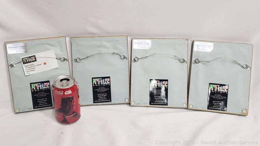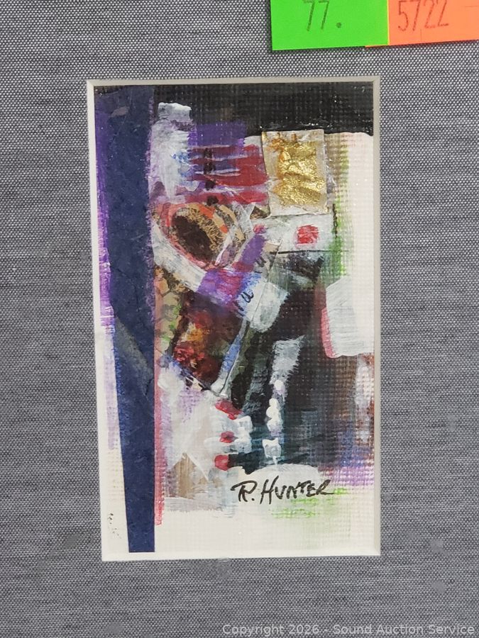 Lot #0077: 4pc Signed R. Hunter Mixed Media Artwork