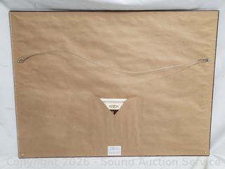 Framed, matted with glass. Comes with paperwork on the back. 38" x 28".