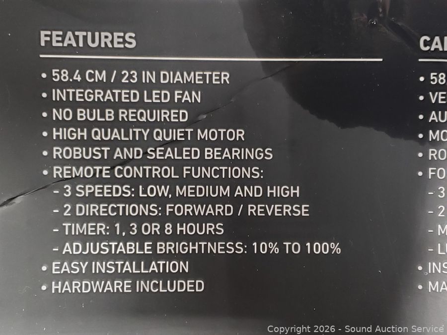 No issues, appears unused. 40W, 2000LM, 3000K color. 23" Dia.