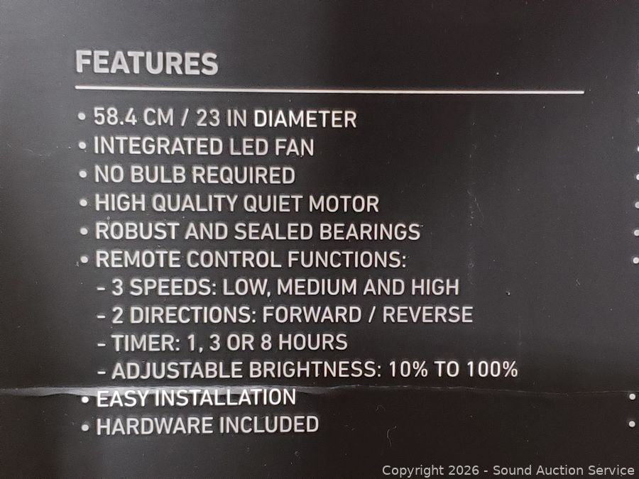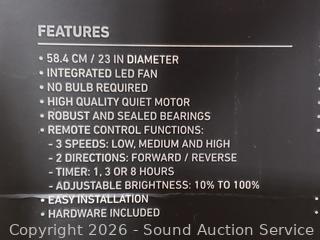 23" Dia. Integrated LEDs, 40W, 2000LM, 3000K color. No issues, appears unused.