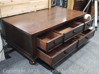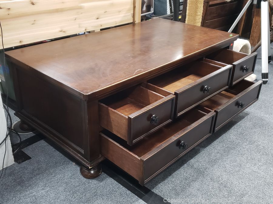 Lot #0051: Dark Finish 5 Drawer Coffee Table