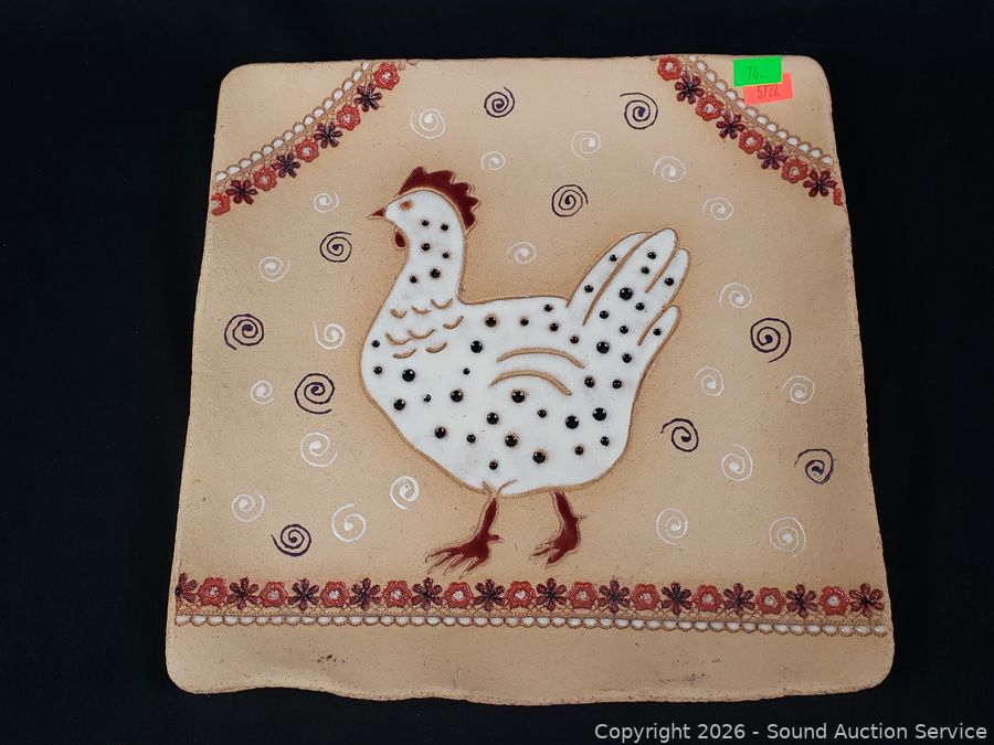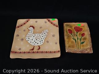 Lot #0076: Handcrafted Marion Pollman Clay Art Tile & Plate