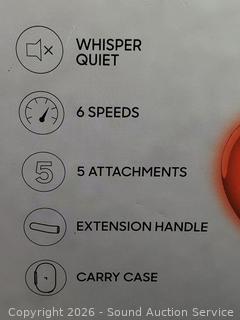 Has power, appears to be functioning as intended. Comes with 5 attachments, USB cable, extension handle. Light wear, dirty spots.