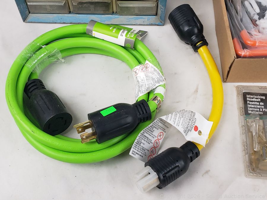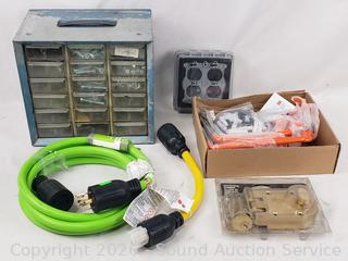 Lot #0263: Hardware Organizer, Generator Power Cable, Deadbolt, Hanging Hooks