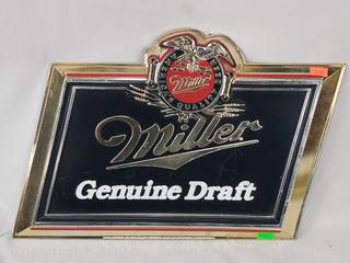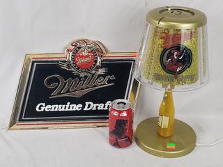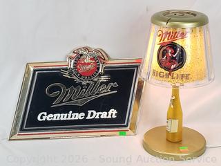 Lot #0143: Miller Light Lamp & Plastic Sign