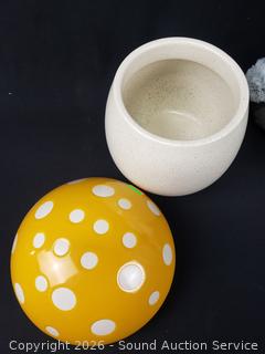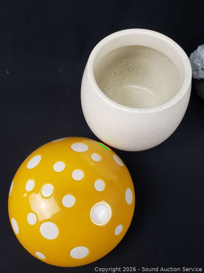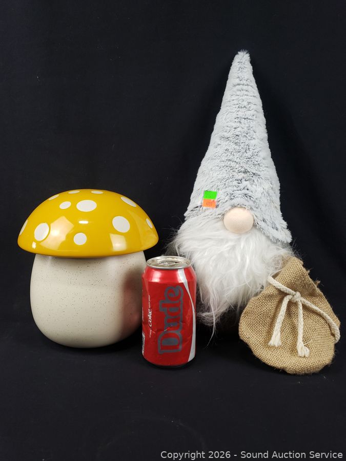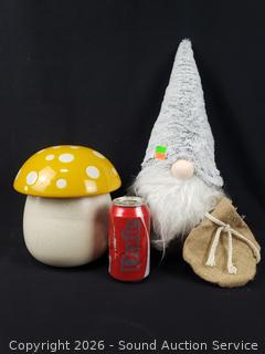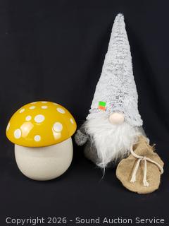 Lot #0215: Mushroom Pottery Canister & Gnome Figure