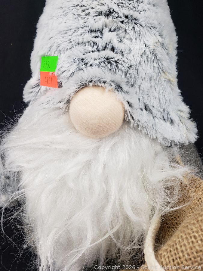 16" tall gnome, bean weighted. Gnome has a dirty hat. 8" H x 7.5" Dia.