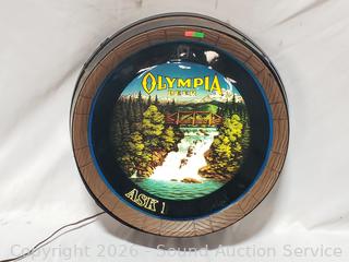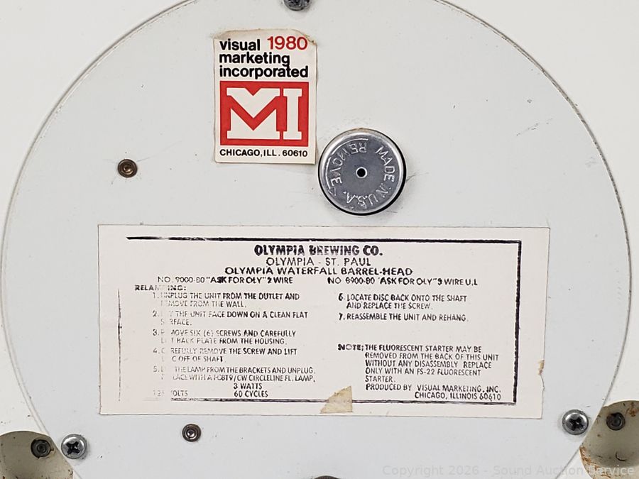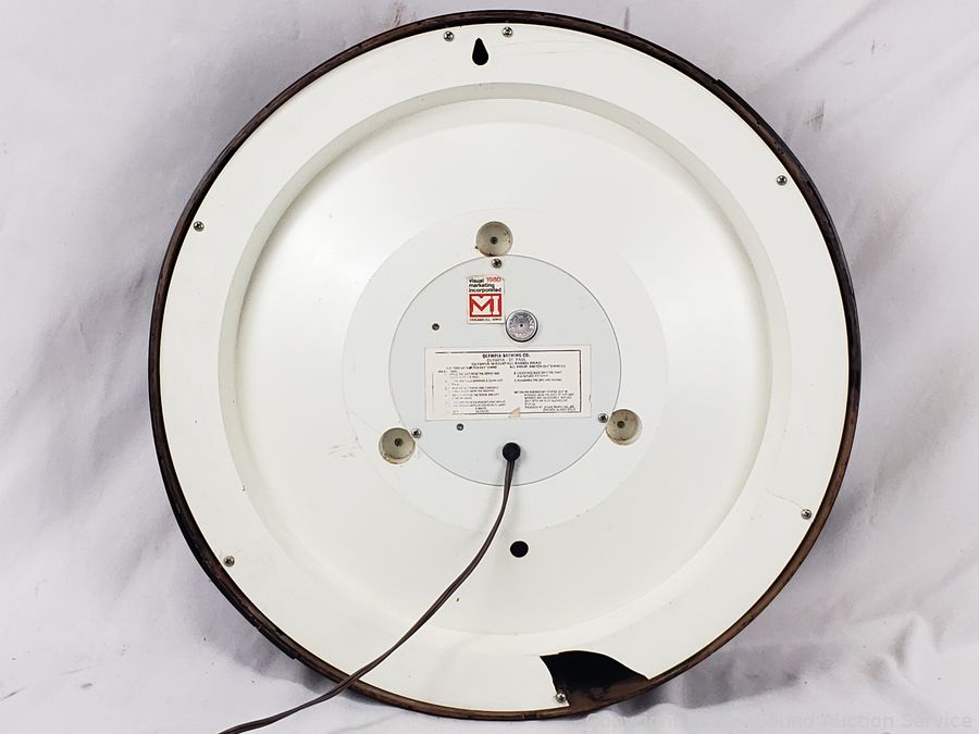 Some parts not lighting up, back panel is cracked & broken. 18" Dia. x 4.5" D.