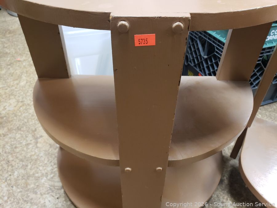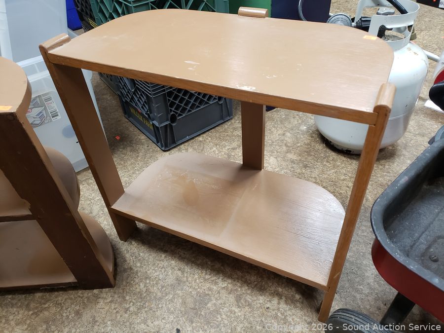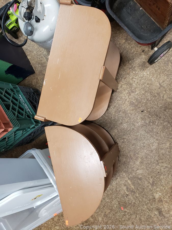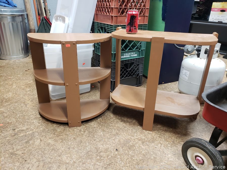 20.5" H x 20" W x 10.25" D. & 21.5" H x 22.5" W x 11" D. Some scuffs, wear to finish.