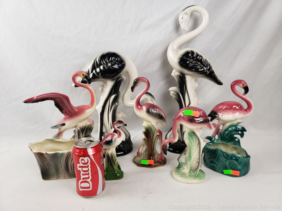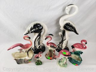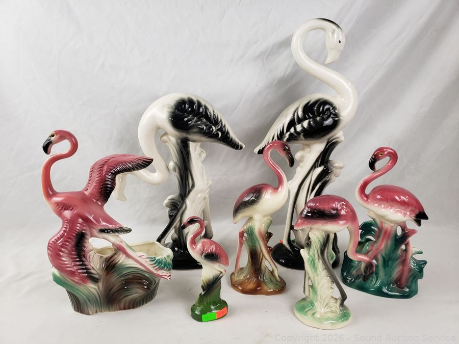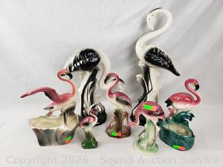 Lot #0147: 7 Ceramic/Porcelain Flamingo Figures