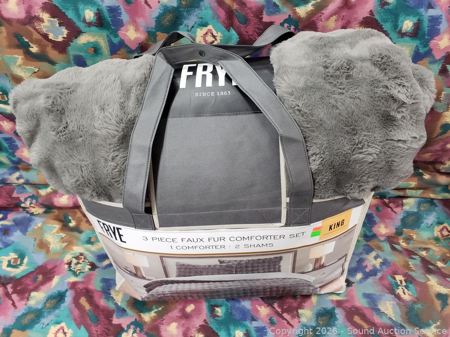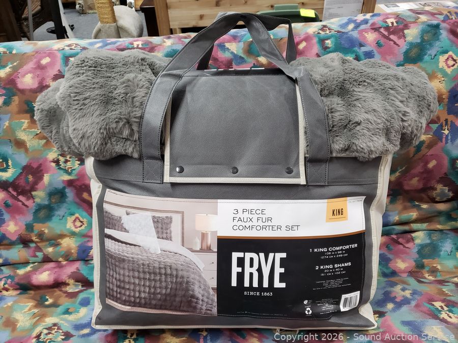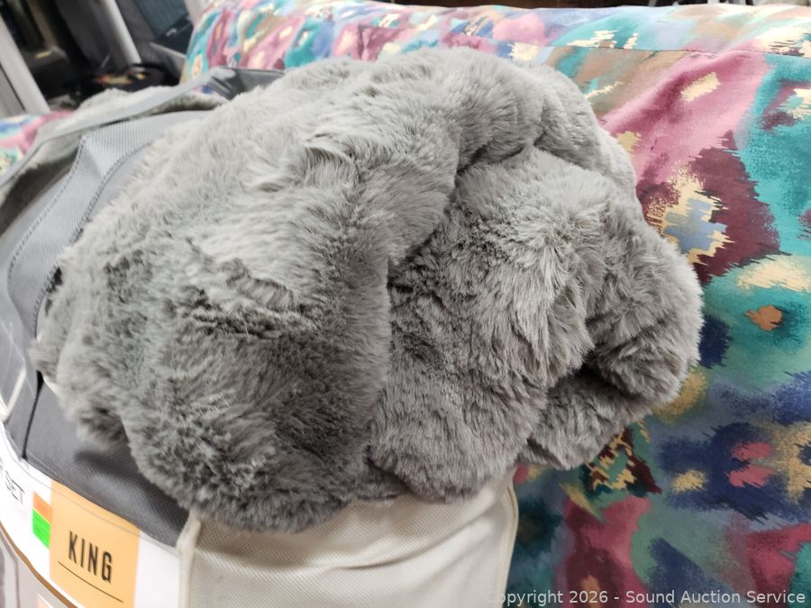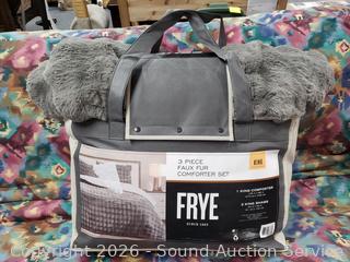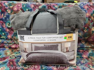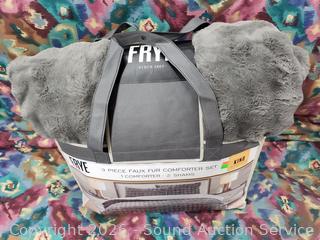 Lot #0102: Frye 3pc Gray Faux Fur King Comforter Set