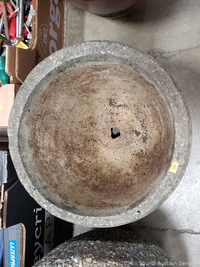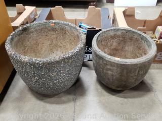 12.5" H x 15" Dia. & 14.5" H x17.5" Dia. Various weathering, wear from use.