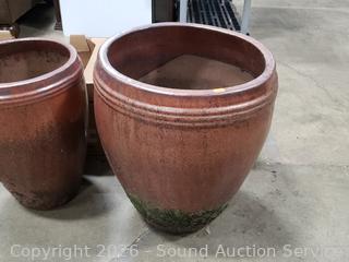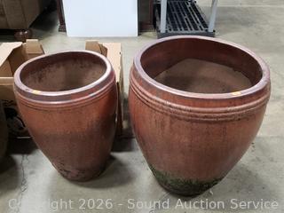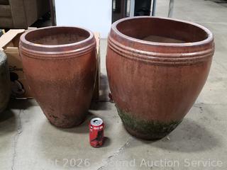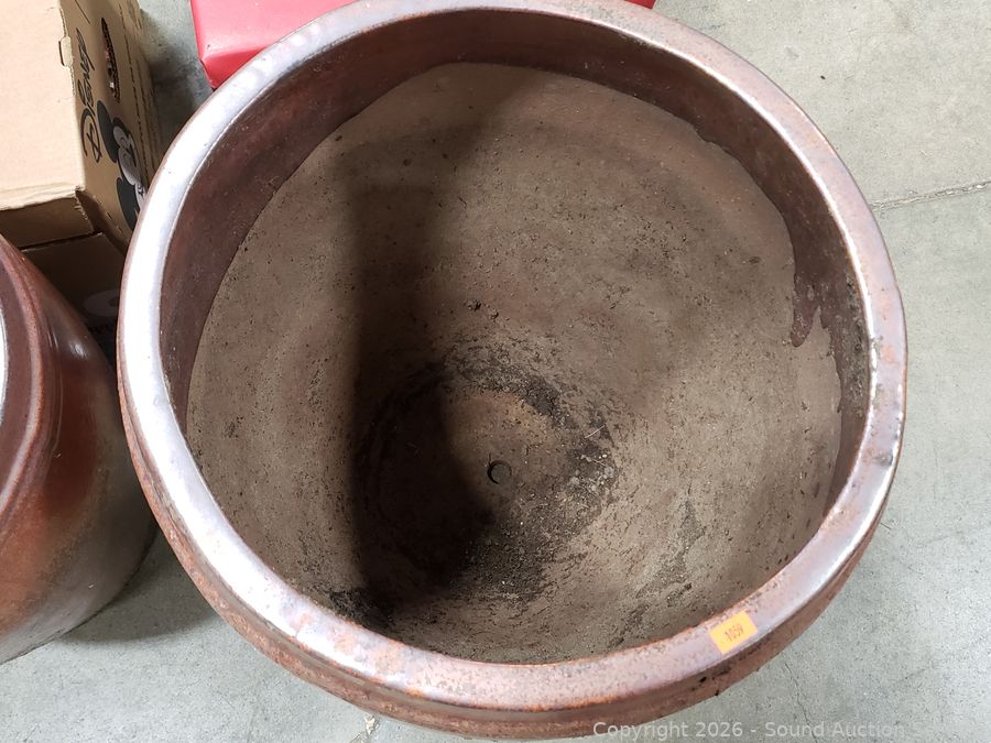 Lot #0017: 2 Glazed Pottery Planter Pots
