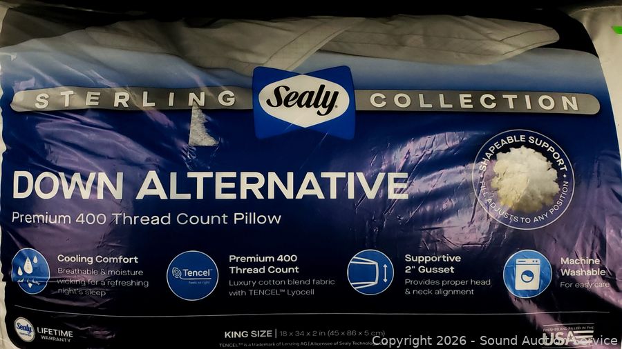 Lot #0105: 2 Sealy Down Alternative 400TC King Pillows