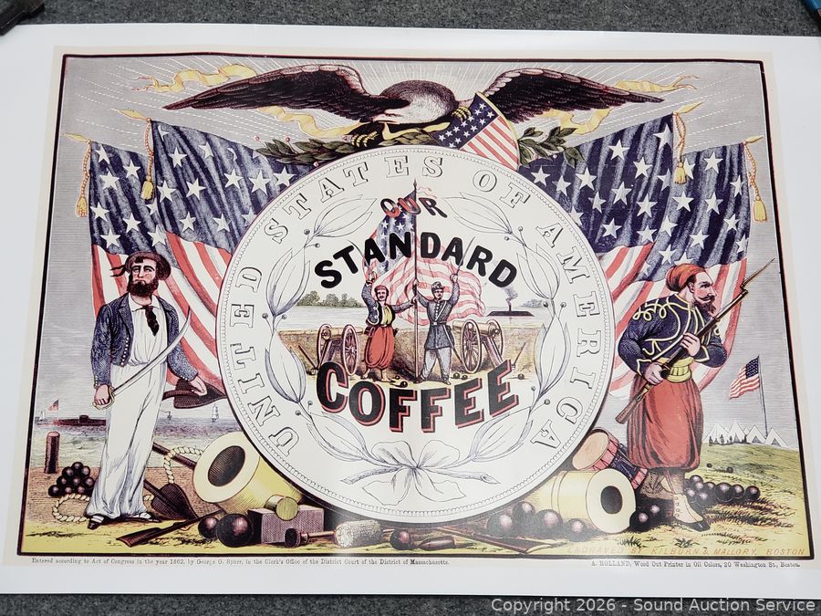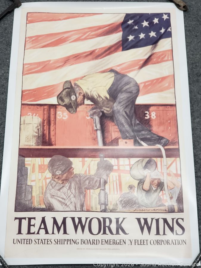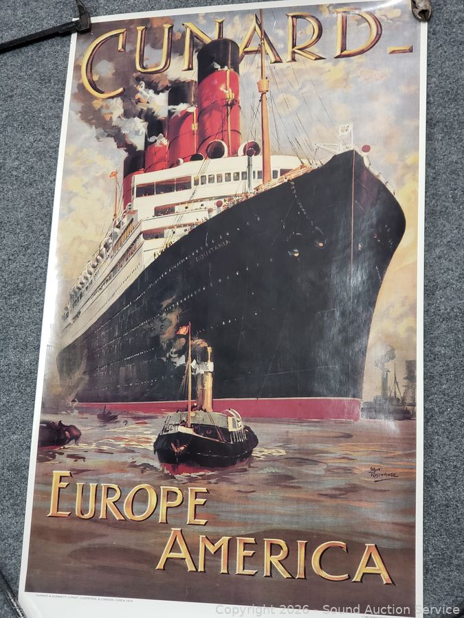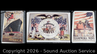 (2) 24" x 36" Teamwork Wins & USA Standard Coffee, (1) 39.5" x 24". Cunard - Europe - America Boat Line.