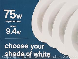 Dimmable, 9.4W, 2700-6500k color. All work. Minor scuffs on a couple of lenses.