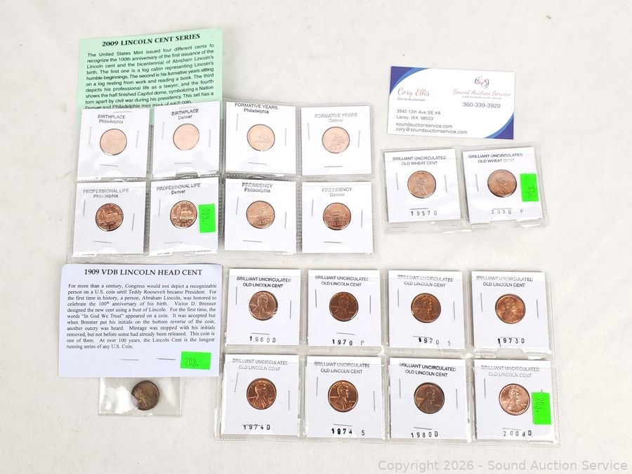 1909 VDB, (8) 2009 Lincoln Cents, (10) BU 1957-2008. ATTN: We are not coin or currency experts or graders, please use your own judgement when bidding.