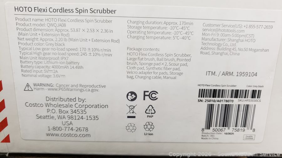 Lot #0321: Hoto Flexi Cordless Spin Scrubber Cleaning Brush
