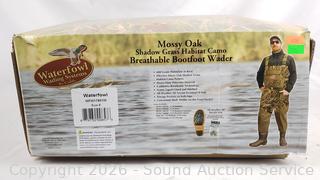 Lot #0171: Mossy Oak Shadow Grass Camo Breathable Barefoot Waders S:8