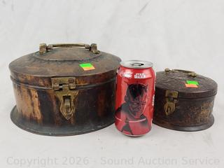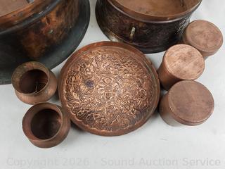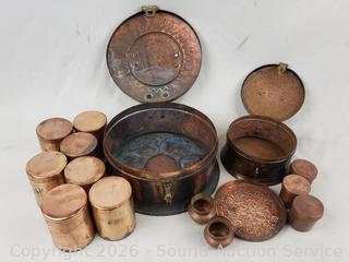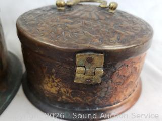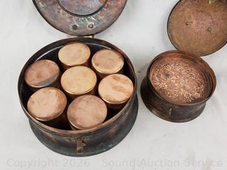 Lot #0224: 2 Handcrafted Copper Trinket Boxes Full of Assorted Jars w/Lids