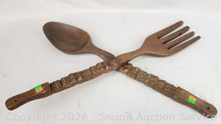 Lot #0265: 4pc Large Novelty Carved Wood Spoon & Fork Decor
