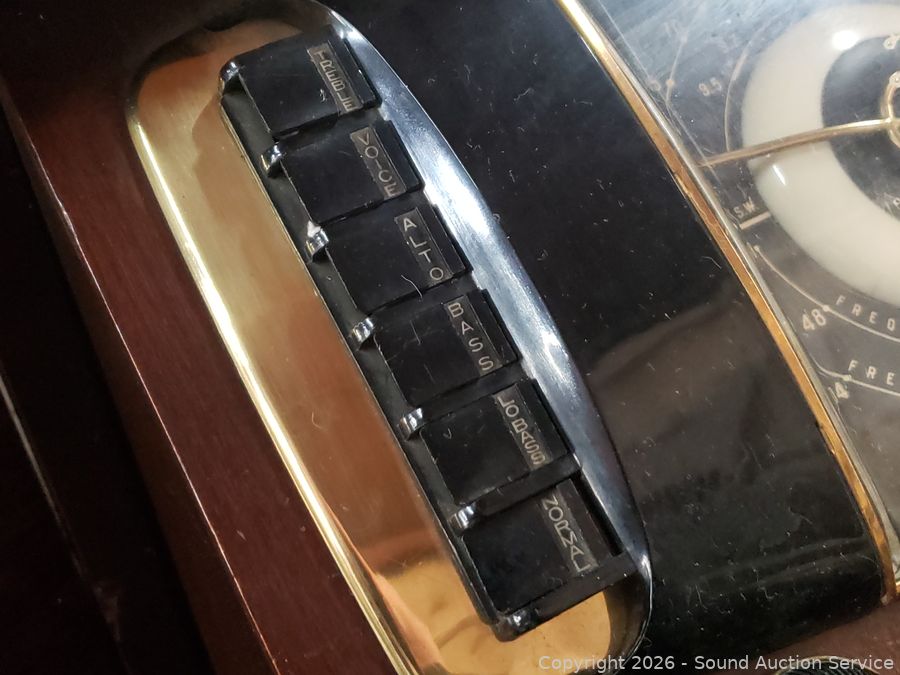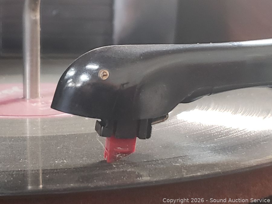 Unsure of the model #102-478? Phono appears to be functioning as intended. Radio and dial is non-functioning. Unsure what the modern plug is for. Handle to pullout phono is broken/missing, various scuffs, scratches in finish. 36.25" H x 40" W x 17.5" D.