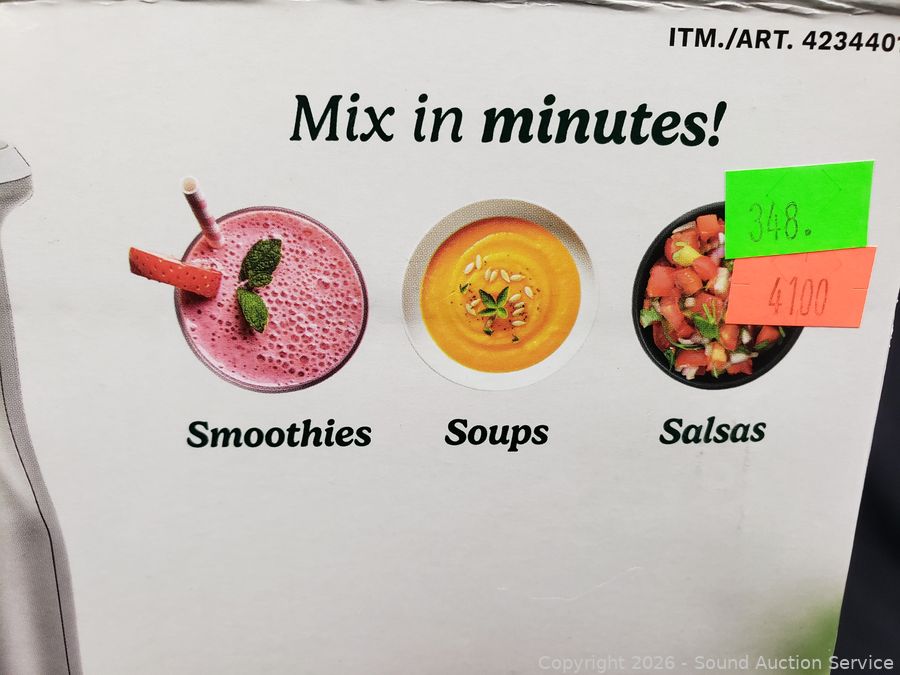 Appears to be functioning as intended. Comes with container, processor, emulsifier, whisk, 2 books, bag.