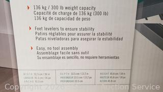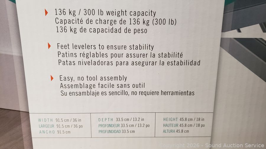 18" H x 36" W x 13.2" D. Appears to be new, complete. Unassembled in original packaging.