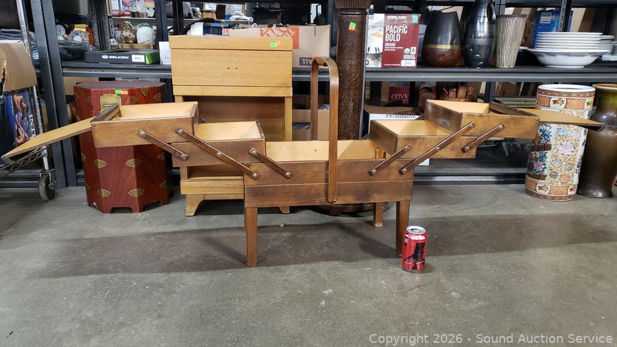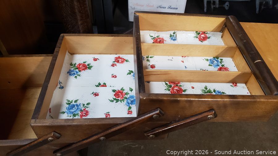 Lot #0049: Vintage 3-Tier Articulating Sewing Box