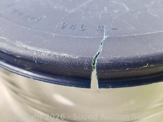 2.5" to 3" H x 5" to 6" Dia. One lid is cracked.