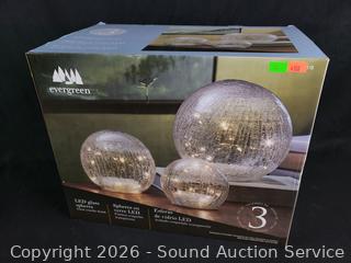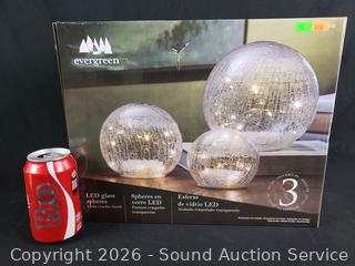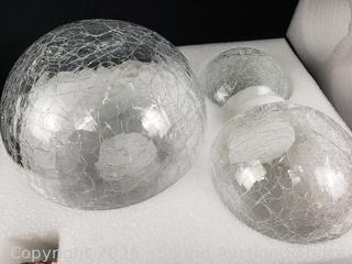 Lot #0334: 3pc Evergreen LED Clear Crackle Glass Spheres
