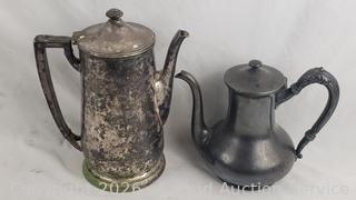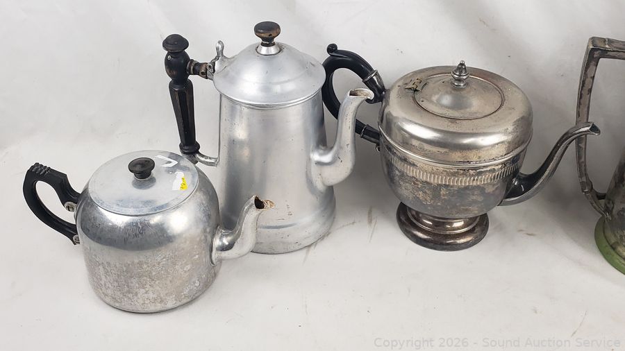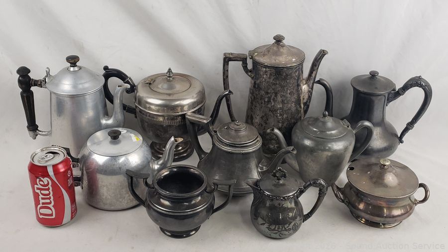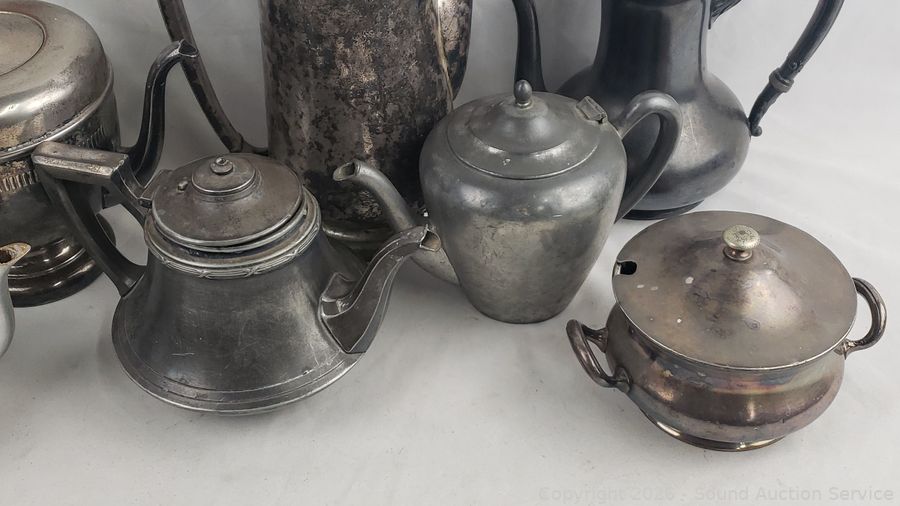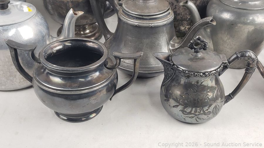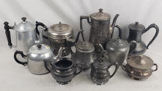 Lot #0074: Assorted Silverplate/Pewter Teapots, Cream, Sugars