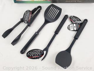 Lot #0116: Calphalon 12" Omelet Pan & 4pc Utensil Set