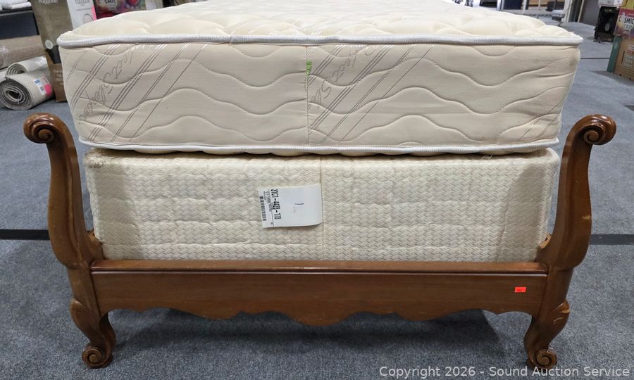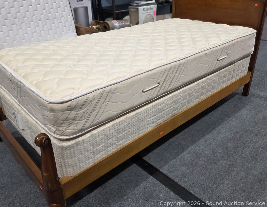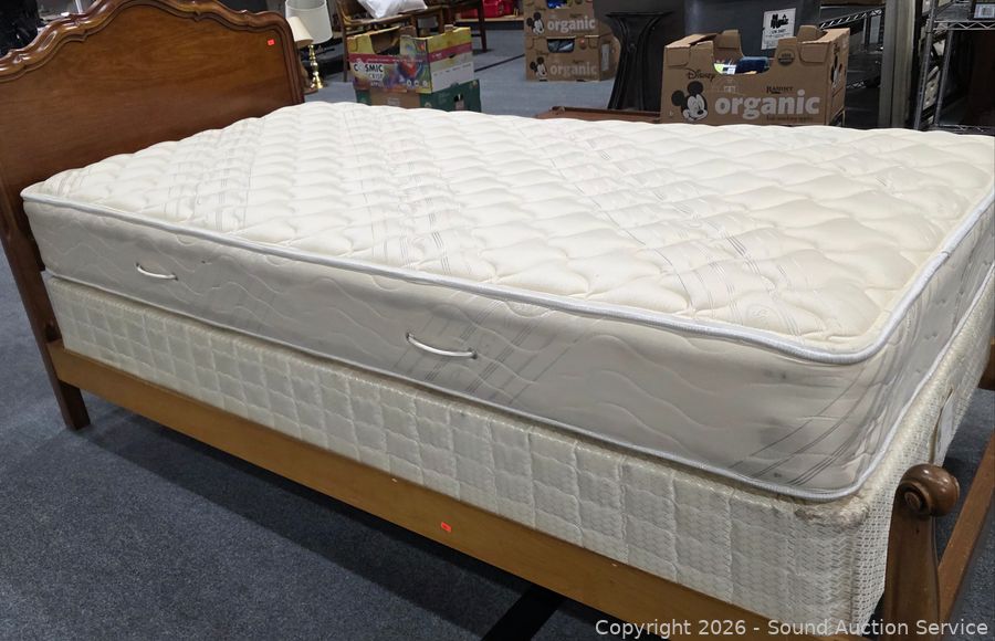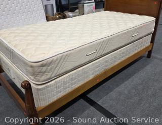 Lot #0024: Kindel Maple Twin Bedframe w/Serta Perfect Sleeper Mattress & Boxspring