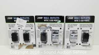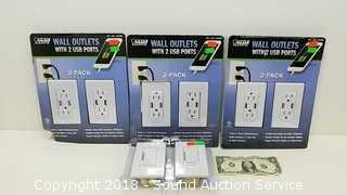 Lot #0237: (3) 2-Pack USB Wall Outlets & Digital Side Dimmers