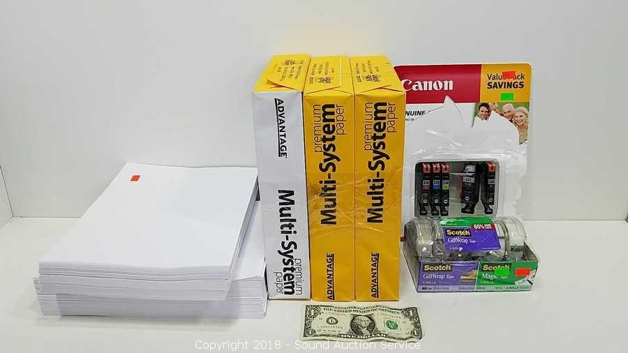 Lot #0238: (5) Reams of Paper, Scotch Tape & Canon Ink