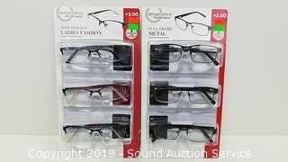 (6) pairs total, each pair comes with a coordinating case. Includes: Full Frame Metal & Semi-Rimless.