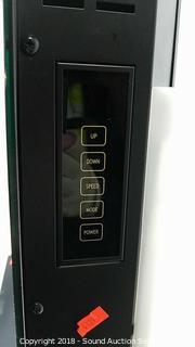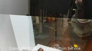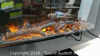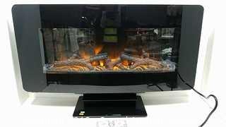 Tested, works. Puts out heat. Has a small crack on the inside of the glass. Approx. 21-1/2" H, 36" W.