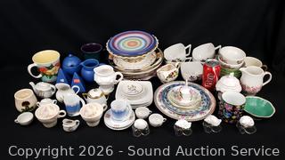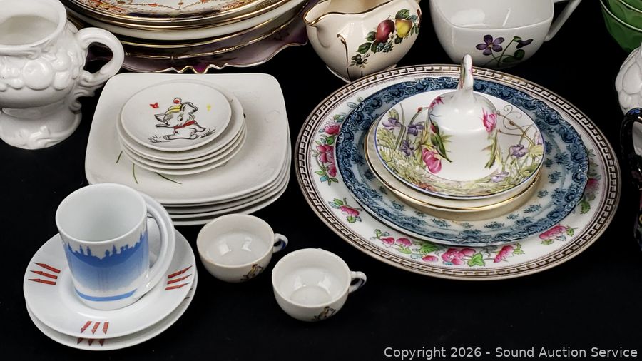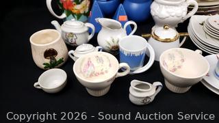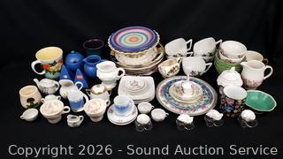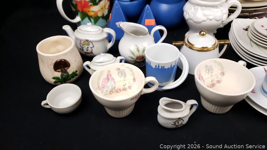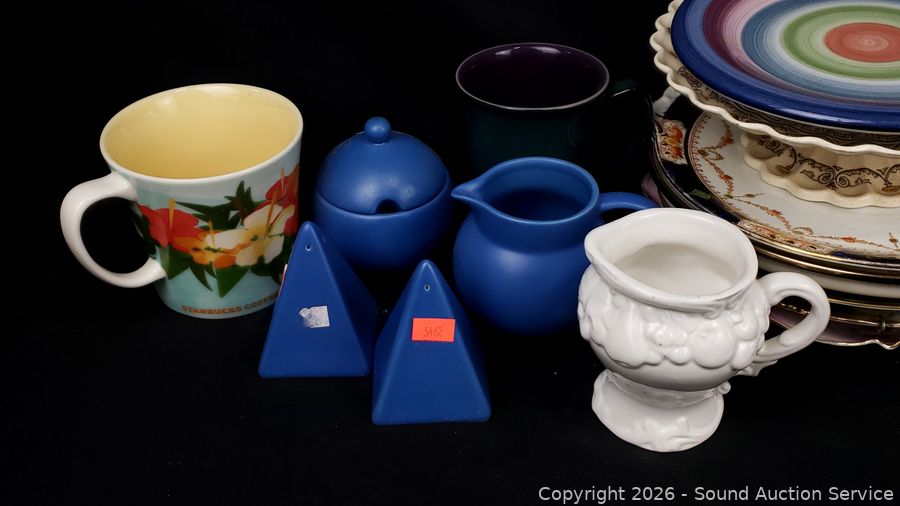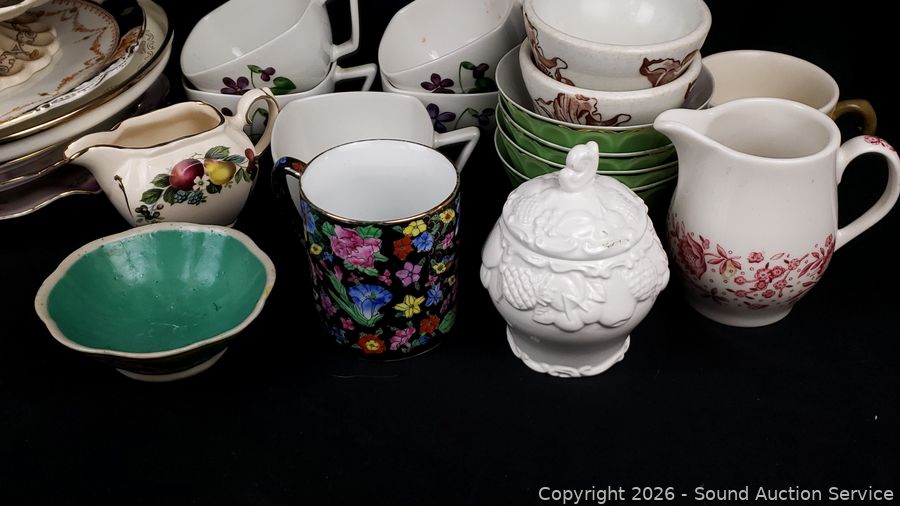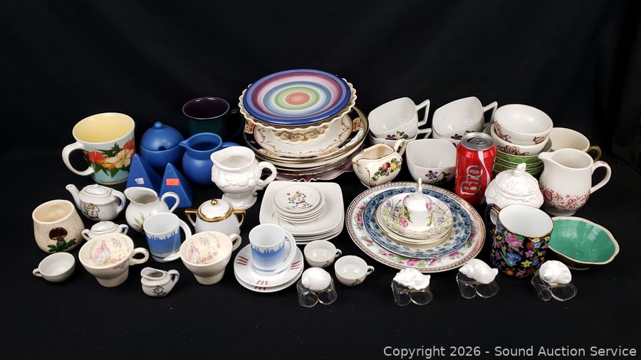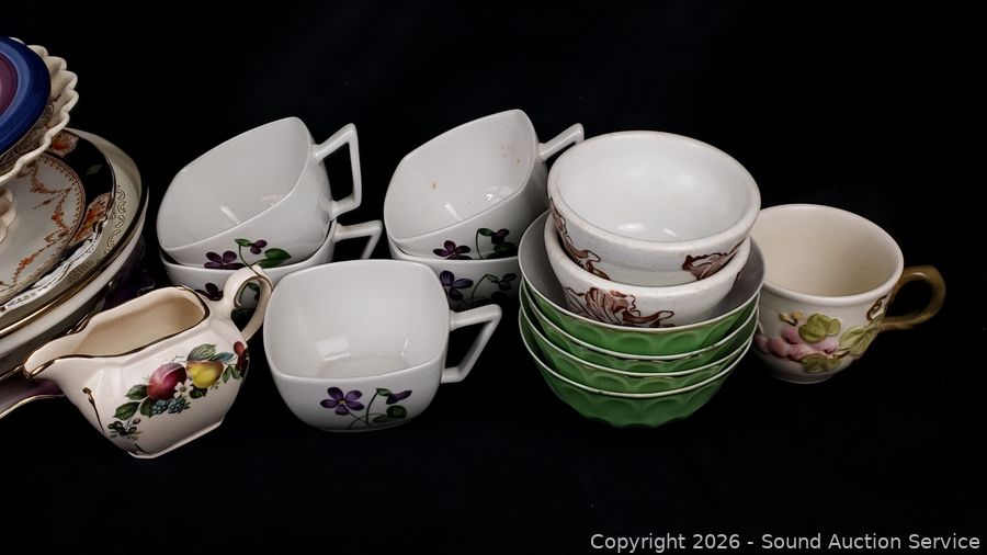 Cups, plates, bowls, creamers, sugars, etc. Refer to photos for lot contents, more details.