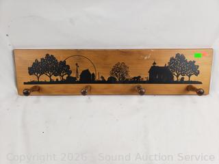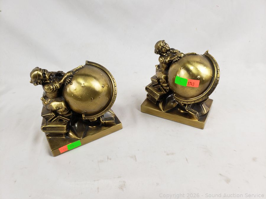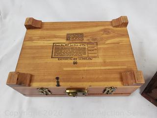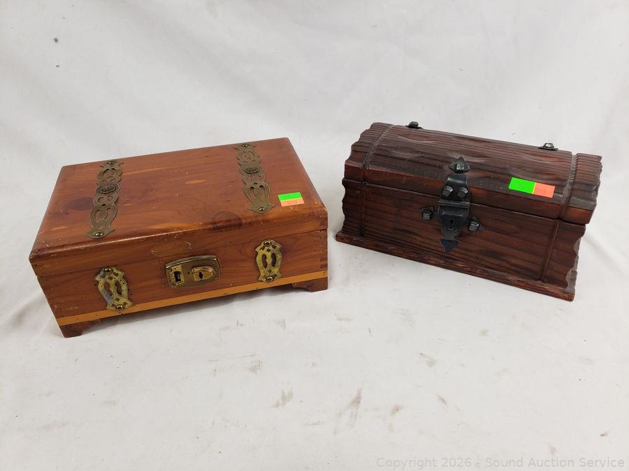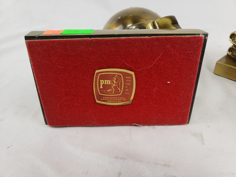 2 wood trinket boxes, Brass bookends, nautical ships wheel table lamp (works, 18" tall), 4 clothes rack, Talco walnut flag case.