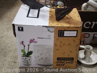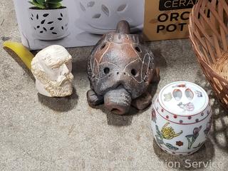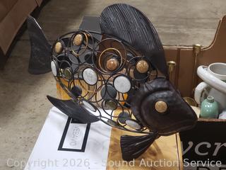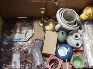Brass candleholders, orchid pot, metal art fish, small vases, knick knacks, etc. Refer to photos for lot contents, more details.